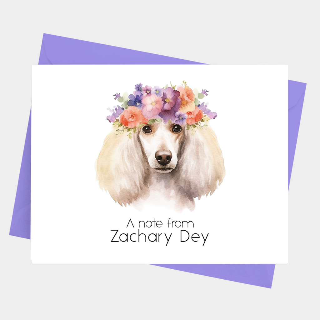 Celebrate your love for Poodles with these charming Poodle Note Cards! Perfect for dog lovers, each card features a delightful Poodle with a floral crown that adds a fun and personal touch. Includes matching envelopes, making them ideal for heartfelt notes, thank-yous, or just saying hello. Brighten someone’s day with stationery as playful as your furry friend!