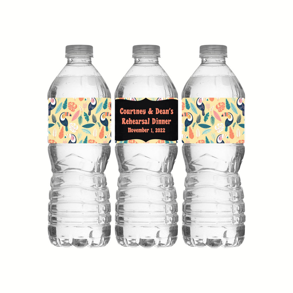 - Water bottle labels DO NOT come with the water bottles. Customer must provide and wrap their own water bottles at home.